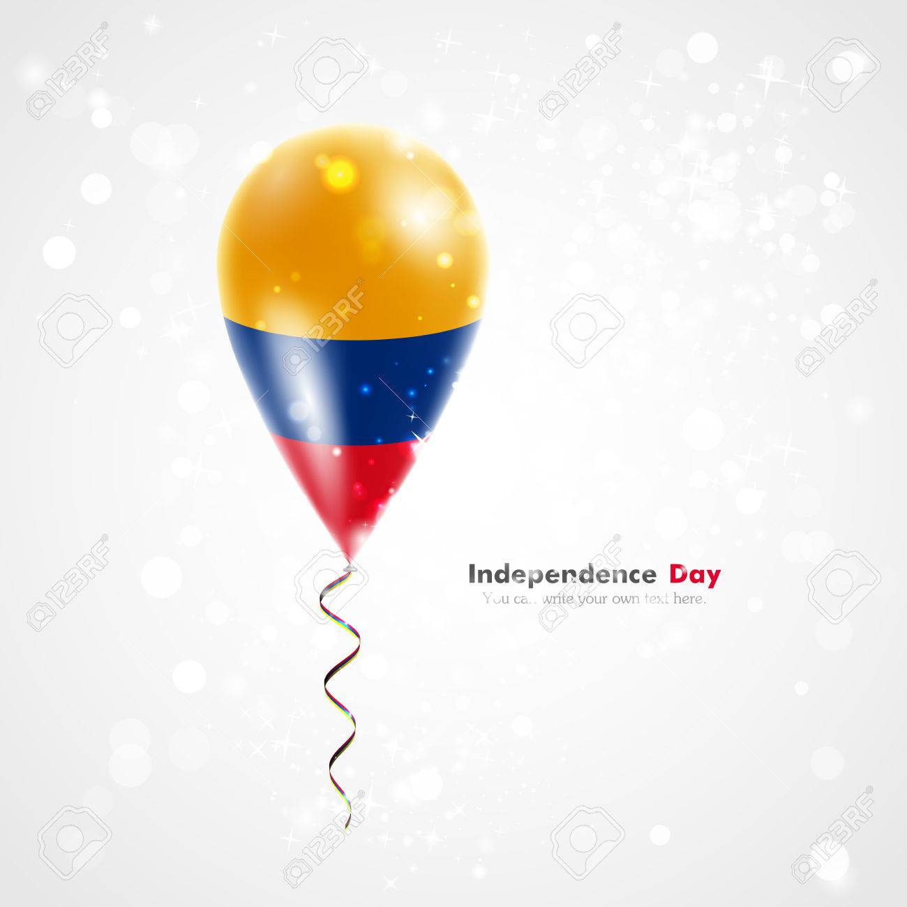 バルーンをコロンビアの旗 お祝いや贈り物 国旗の色のリボンは気球の下でねじれています 独立記念日 建国記念の日のごちそうの風船 のイラスト素材 ベクタ Image