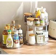 Amazon Extend 調味料いれ おしゃれ 収納 調味料収納トレイ 360 回転式 キッチン調味料収納 キッチン収納 回転式トレー 回転トレイ おしゃれ キッチン 調味料収納ラック 調味料 収納 便利 おしゃれ 2層 省スペース 楽チン取り出し スパイスラック 多機能 調味料 果物